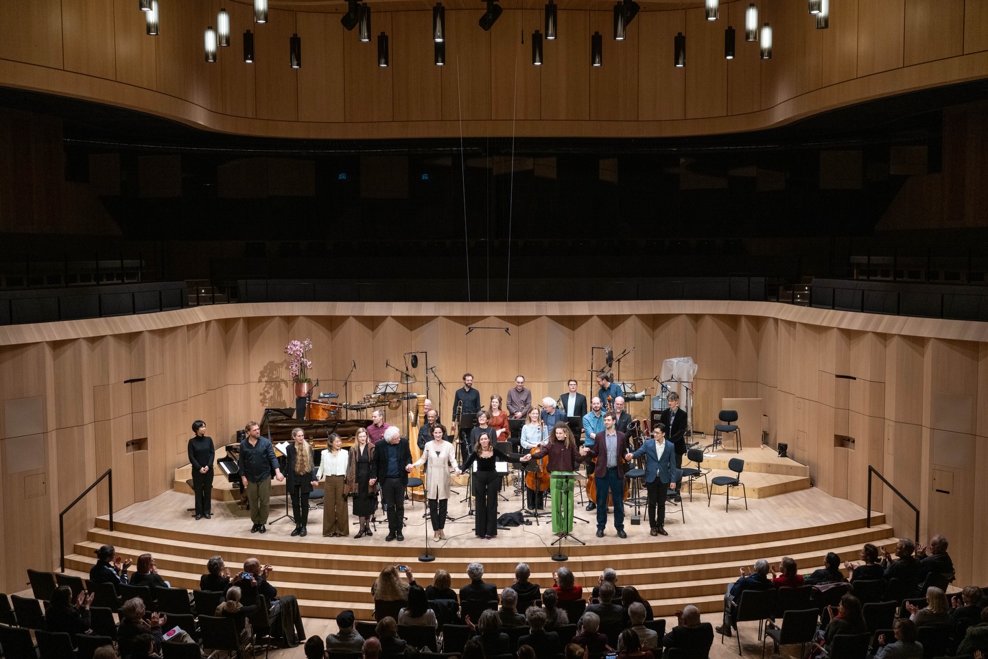 cresc… SCHWÄRMEN | Superorganism At VILCO Bad Vilbel, Ensemble Modern joined forces with the hr-Sinfonieorchester - Frankfurt Radio Symphony — two sound bodies coming together for an evening dedicated to the festival theme Swarms. At the centre was ›Wound‹ by Rebecca Saunders, alongside ›Superorganisms‹ by Miroslav Srnka and the chamber arrangements of ›Studies No. 7, 6, 12‹ by Conlon Nancarrow. Conducted by Sylvain Cambreling 📸 hr / Sebastian Reimold cresc... is made possible by the Kulturfonds Frankfurt RheinMain. Kindly supported by Ensemble Modern Patronatsgesellschaft e.V. In partnership with VILCO – Bad Vilbel Town Hall. #EnsembleModern #cresc2026 #ContemporaryMusic #Superorganism #BadVilbel