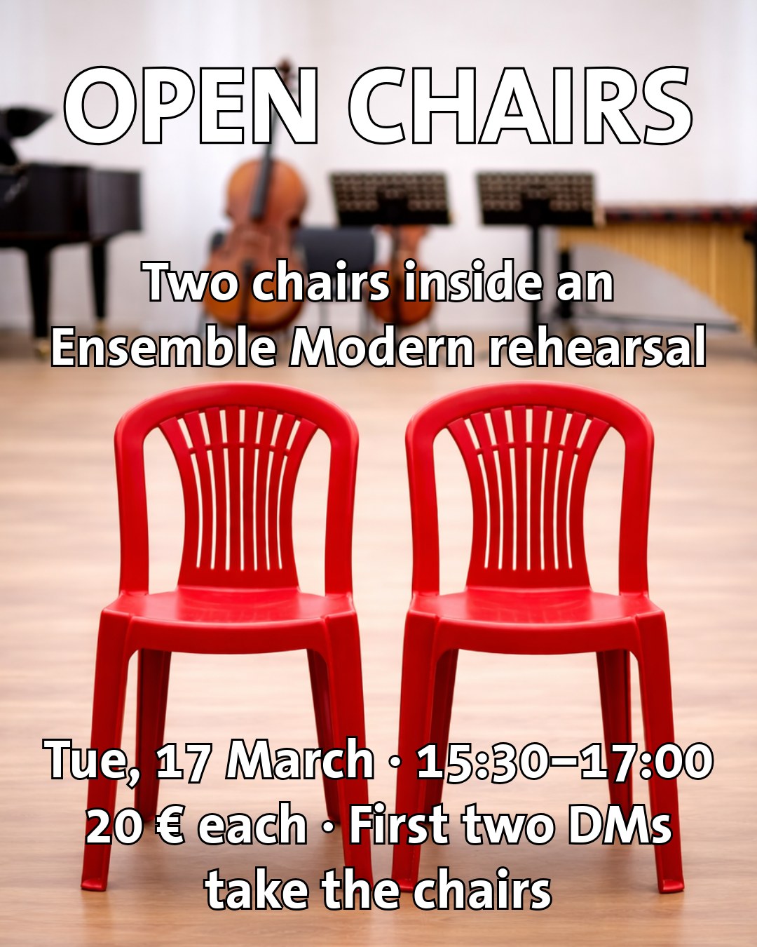 OPEN CHAIRS Two seats inside an Ensemble Modern rehearsal — ...